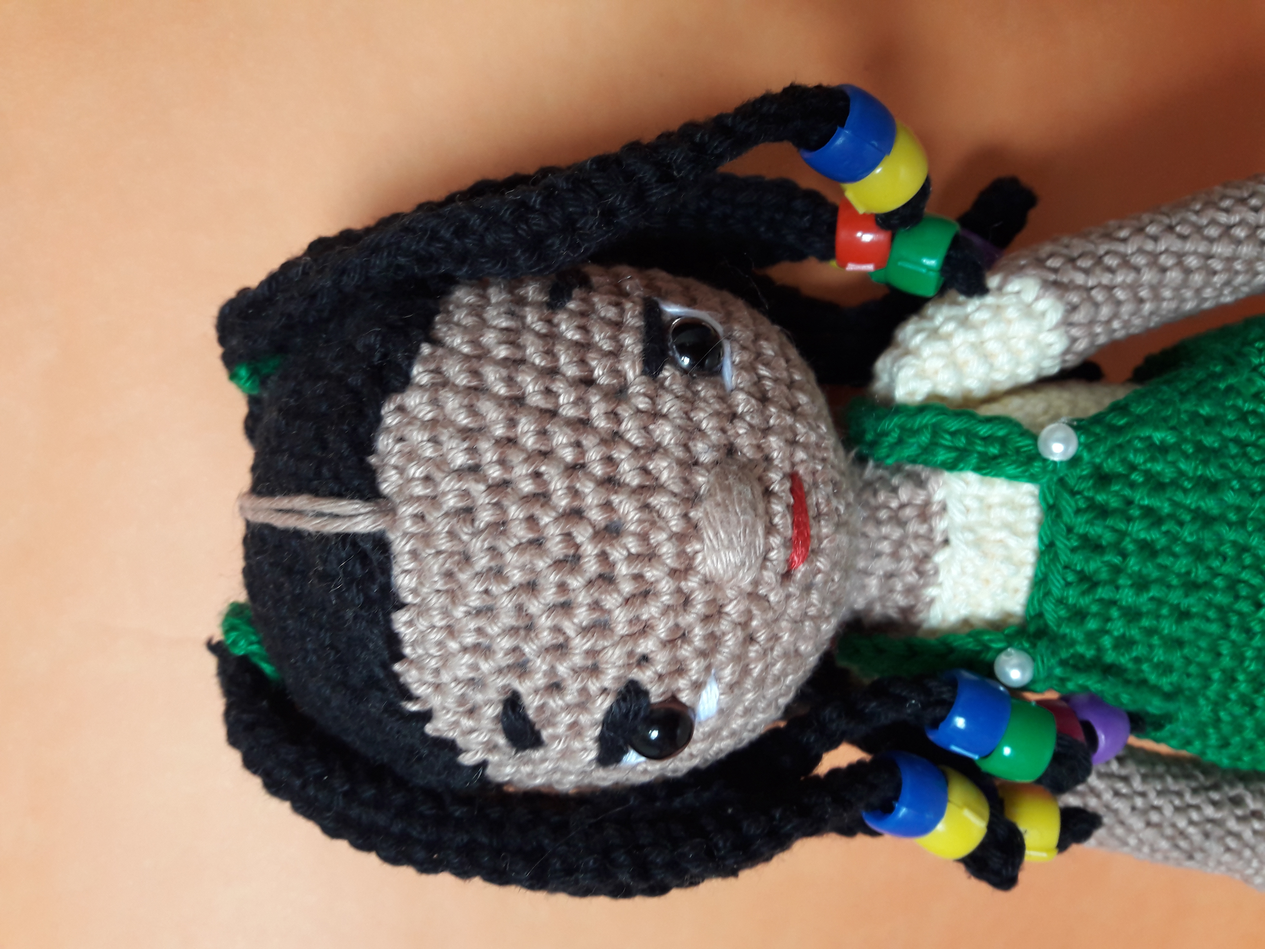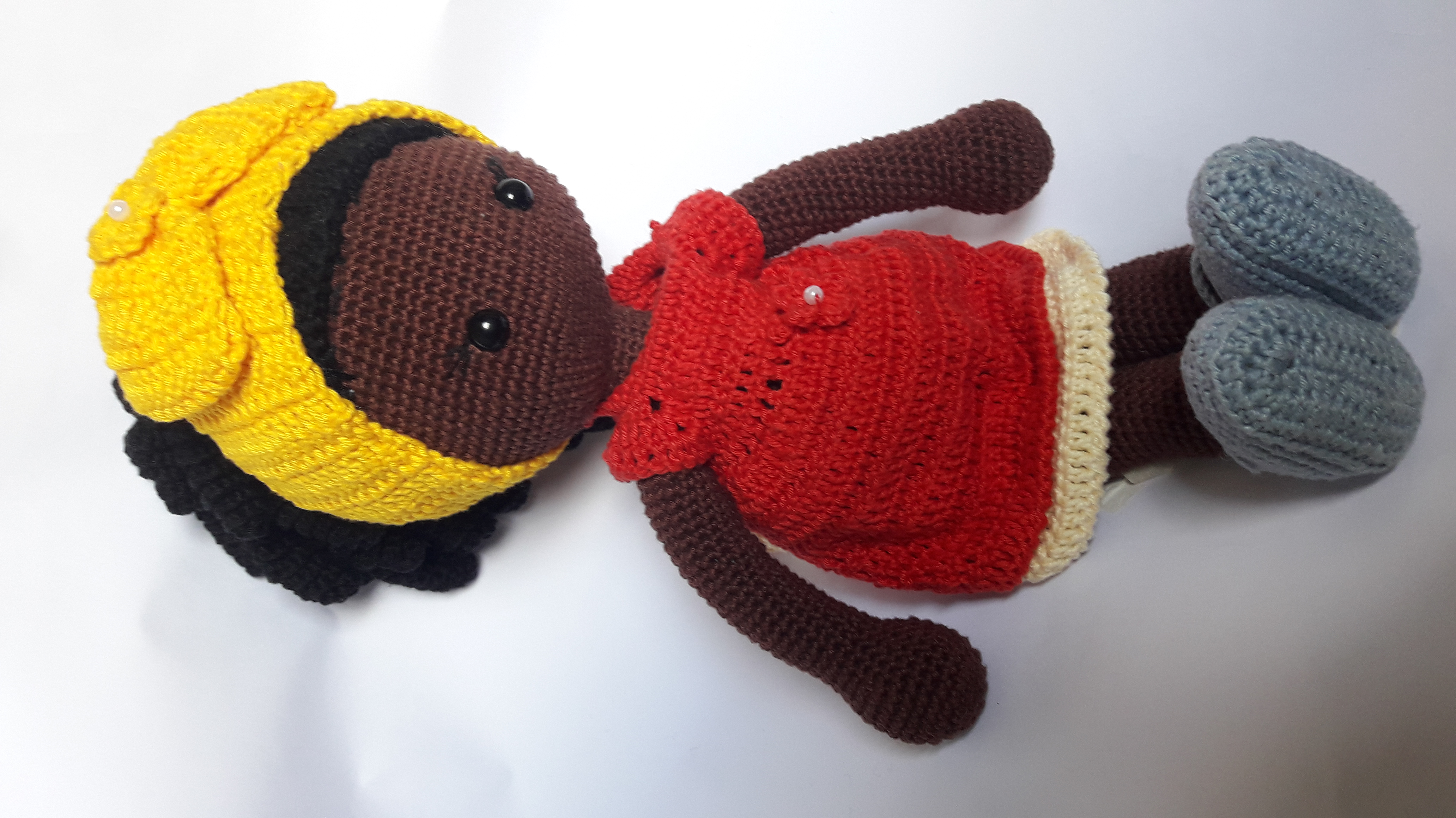 Boneca confeccionada em amigurumi em tons de pele a definir, marrom, brigadeiro ou bege