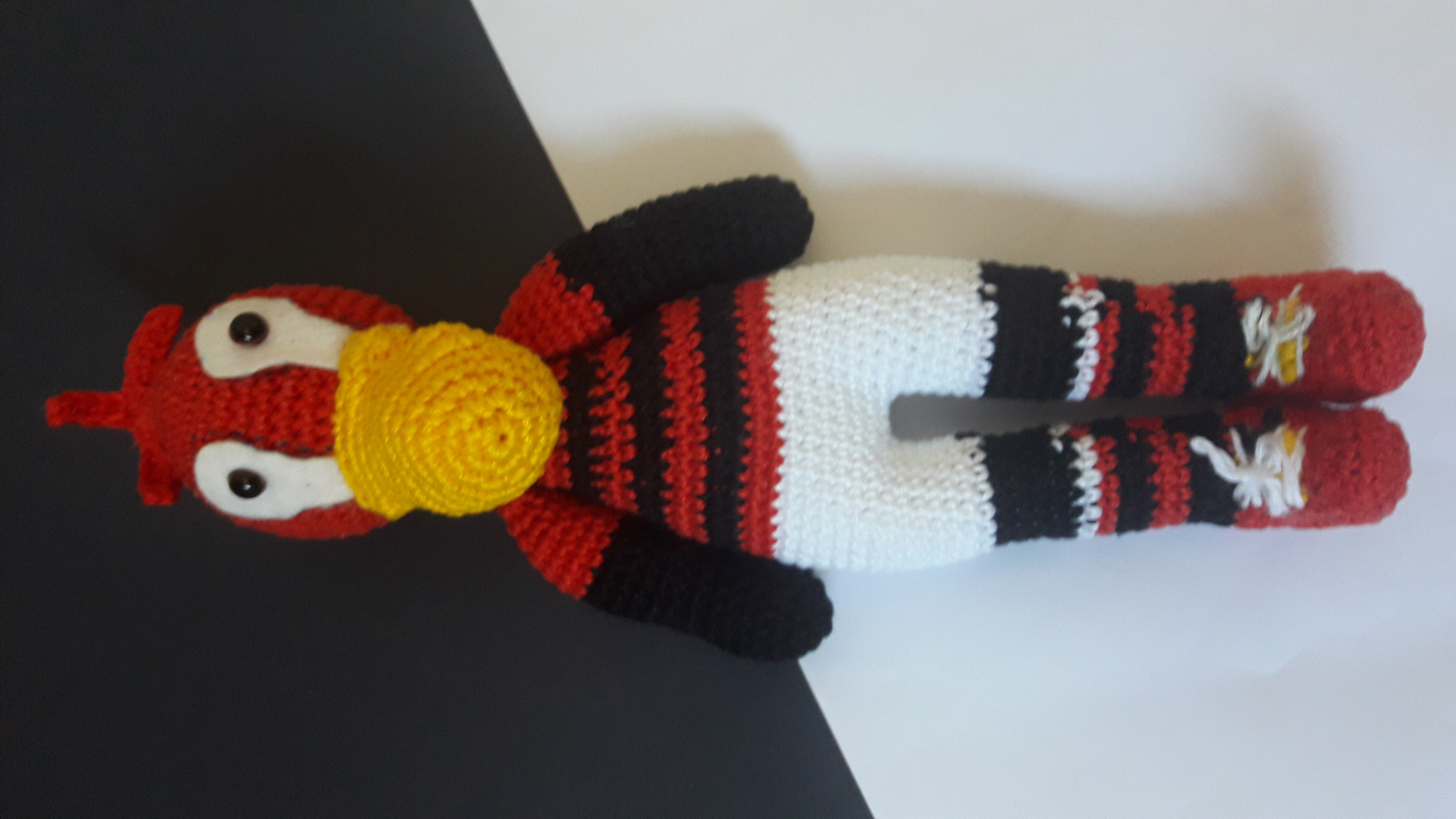 Boneco em amigurumi em formato de urubu feito em linhas de algodão mercerizado nas cores branco, preta e vermelha nas cores branco, vermelho e preto *detalhes do bico em amarelo fibras antialérgicas e olhos com travas de segurança e feltro tamanho 28cm Tempo de produção até 07 dias úteis