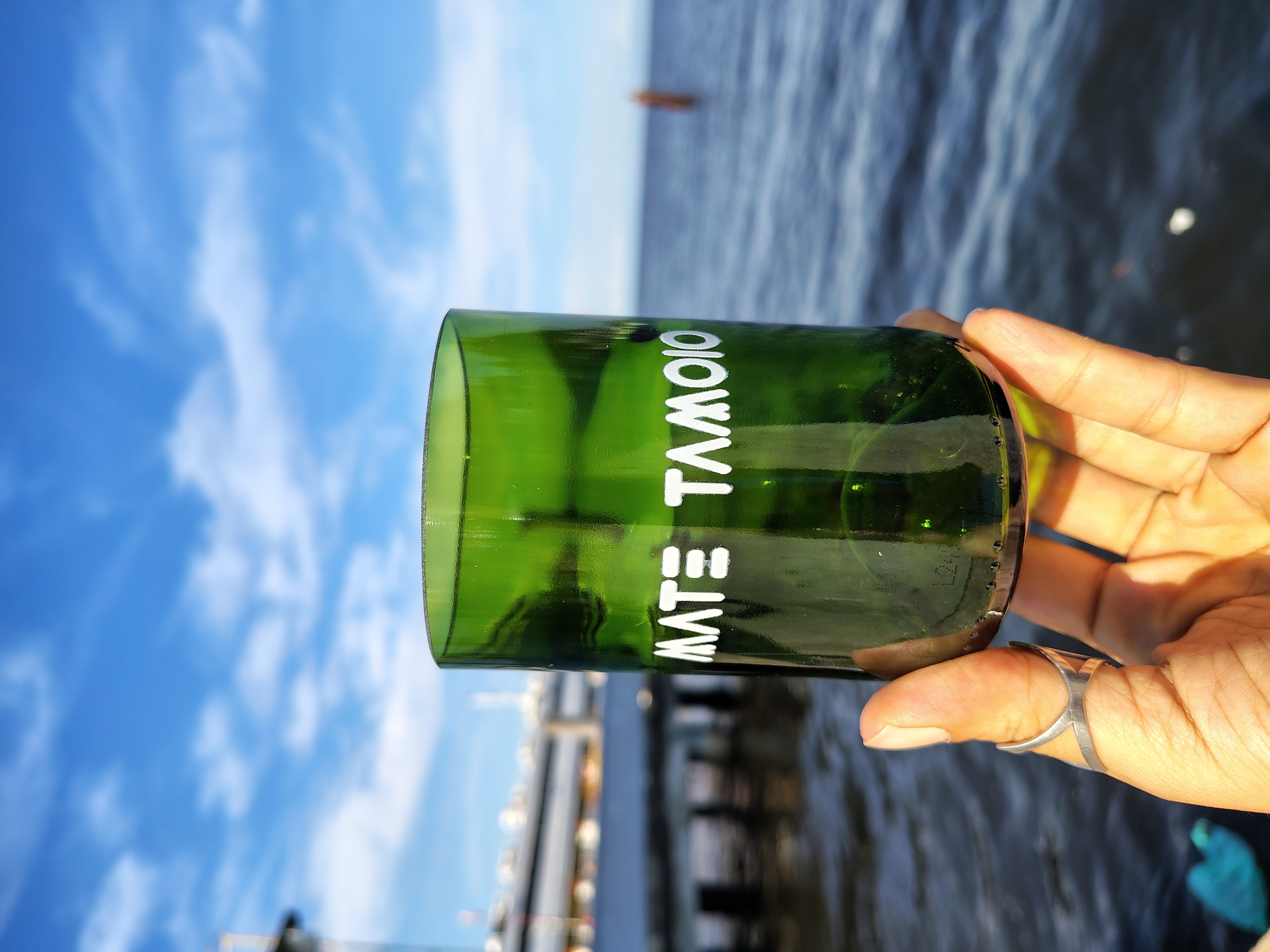 Eco copo artesanal feito a partir de garrafas de vidro recicladas, reaproveitadas de forma consciente. Ideal para servir chá mate, sucos e outras bebidas, reduzindo o descarte de vidro e incentivando a economia circular. Cada copo é único, resistente e sustentável. Vendemos no varejo e no atacado, atendendo comércios, eventos, projetos, escolas e ações socioambientais.
